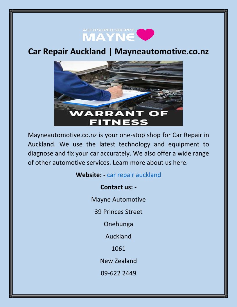 Car Repair Auckland Mayneau...