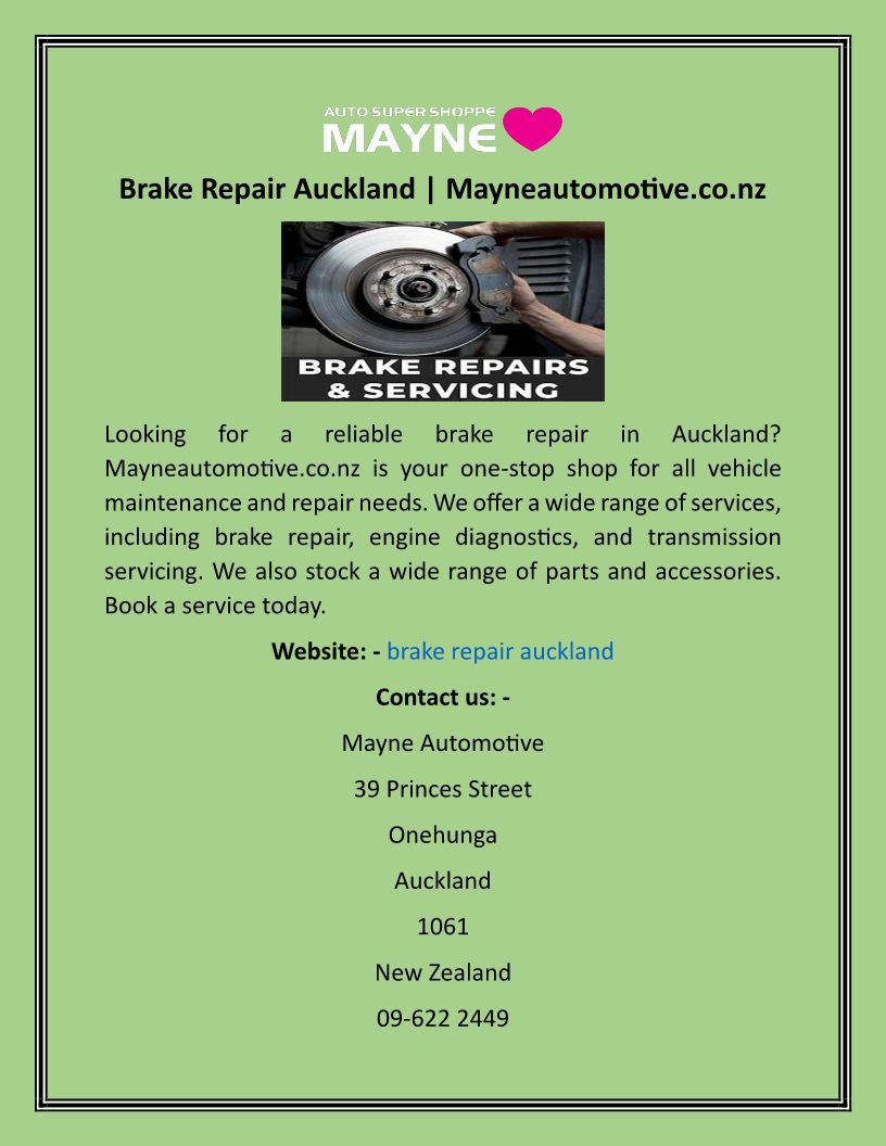 Brake Repair Auckland Mayne...