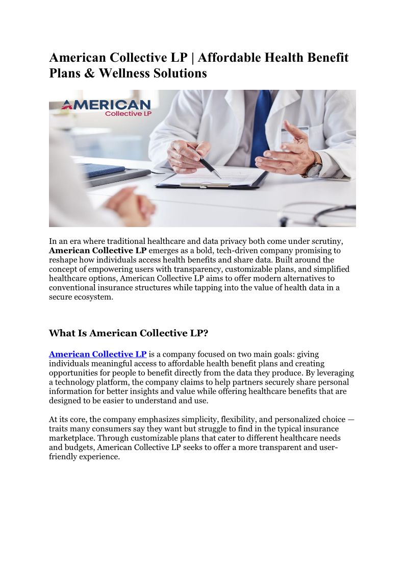 American Collective Health Plans delivers accessible and affordable healthcare solutions for individuals and families across the U.S. By partnering with top phy