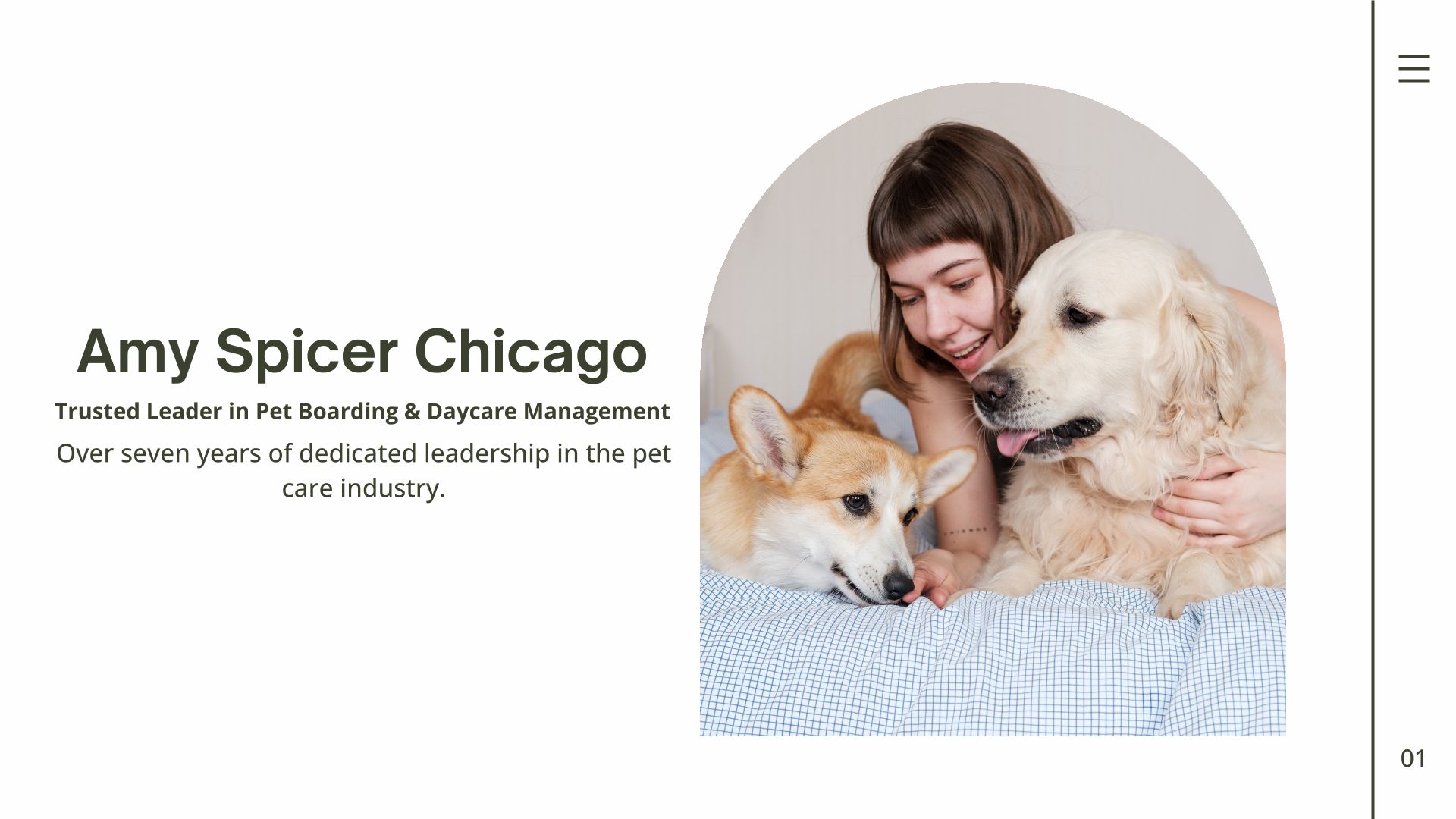 Amy Spicer Chicago is the General Manager of a trusted dog daycare and boarding business.