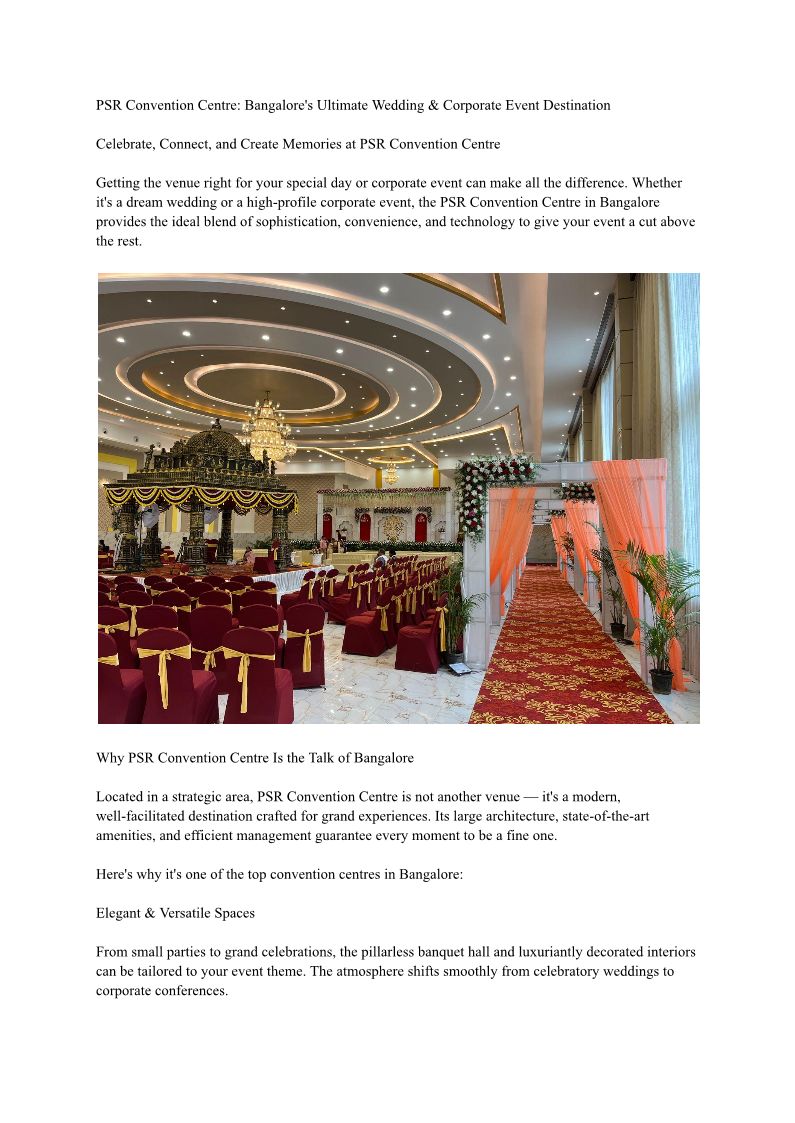 PSR Convention Centre – Pr...