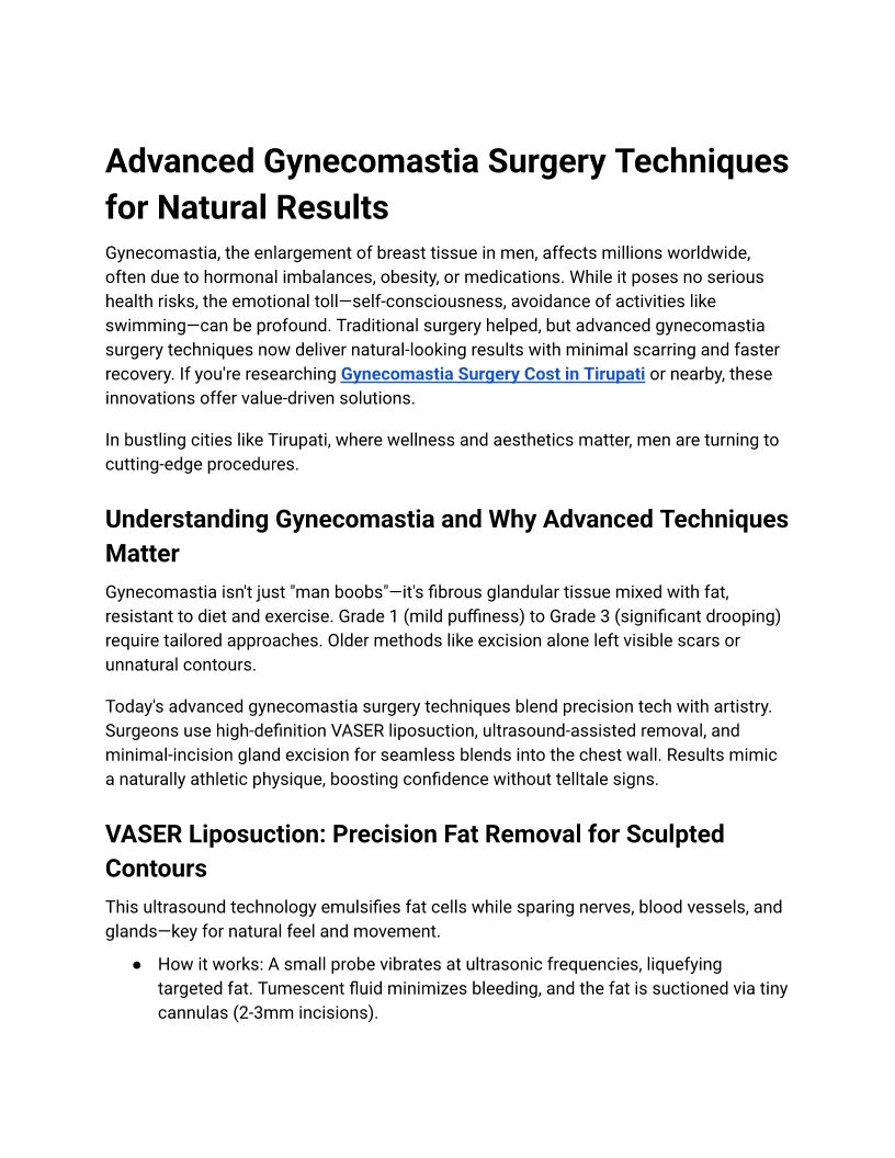 Gynecomastia Surgery Cost in...