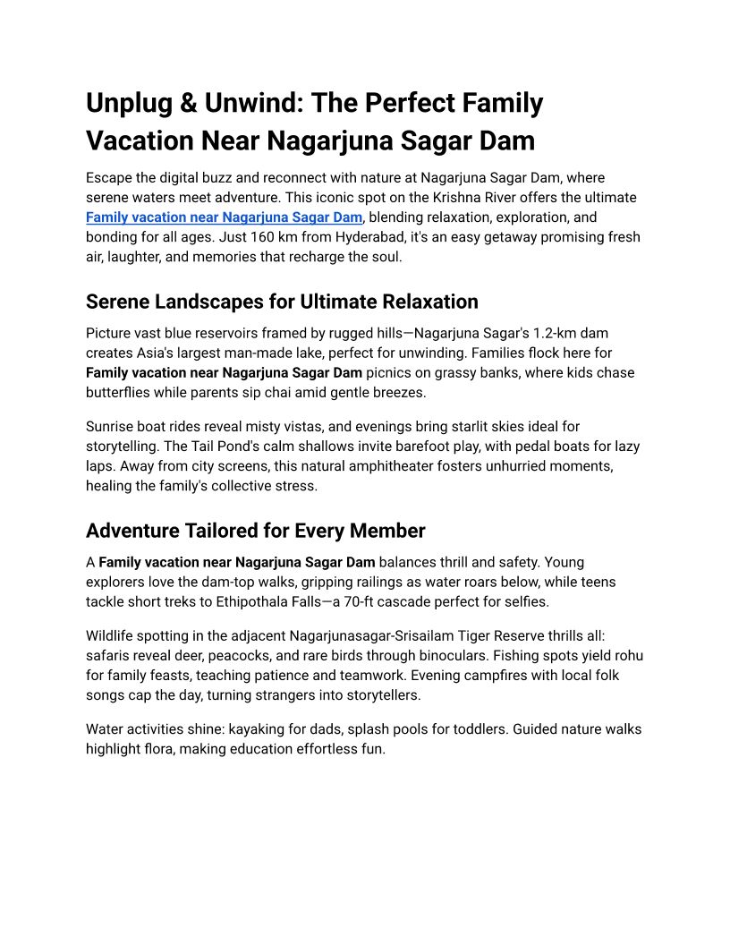 Family Vacation Near Nagarju...