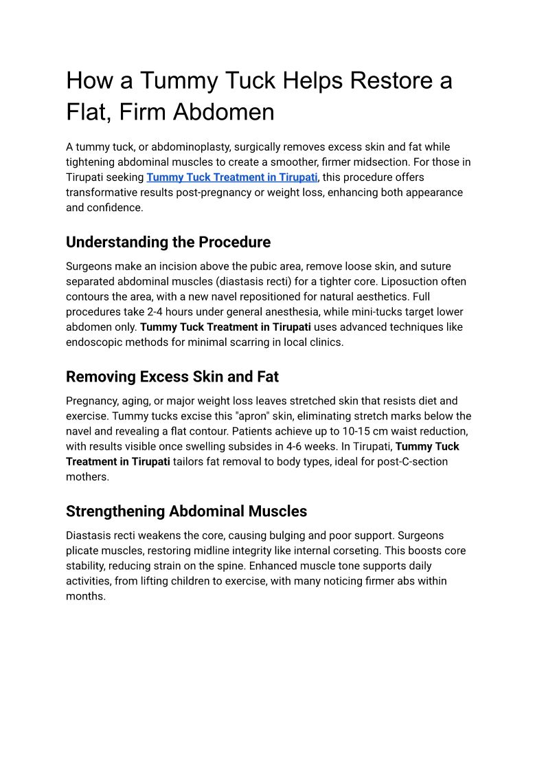 Tummy Tuck Treatment in Tiru...