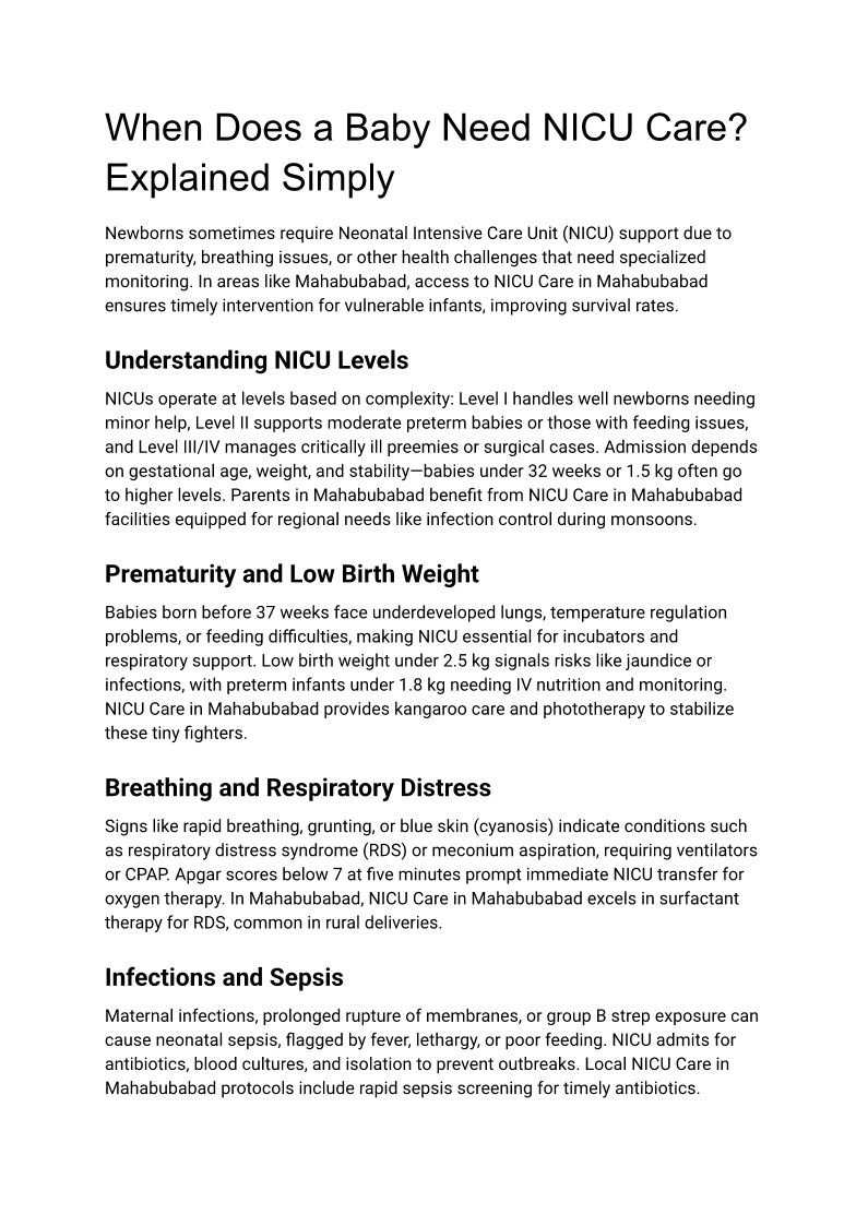 NICU Care in Mahabubabad