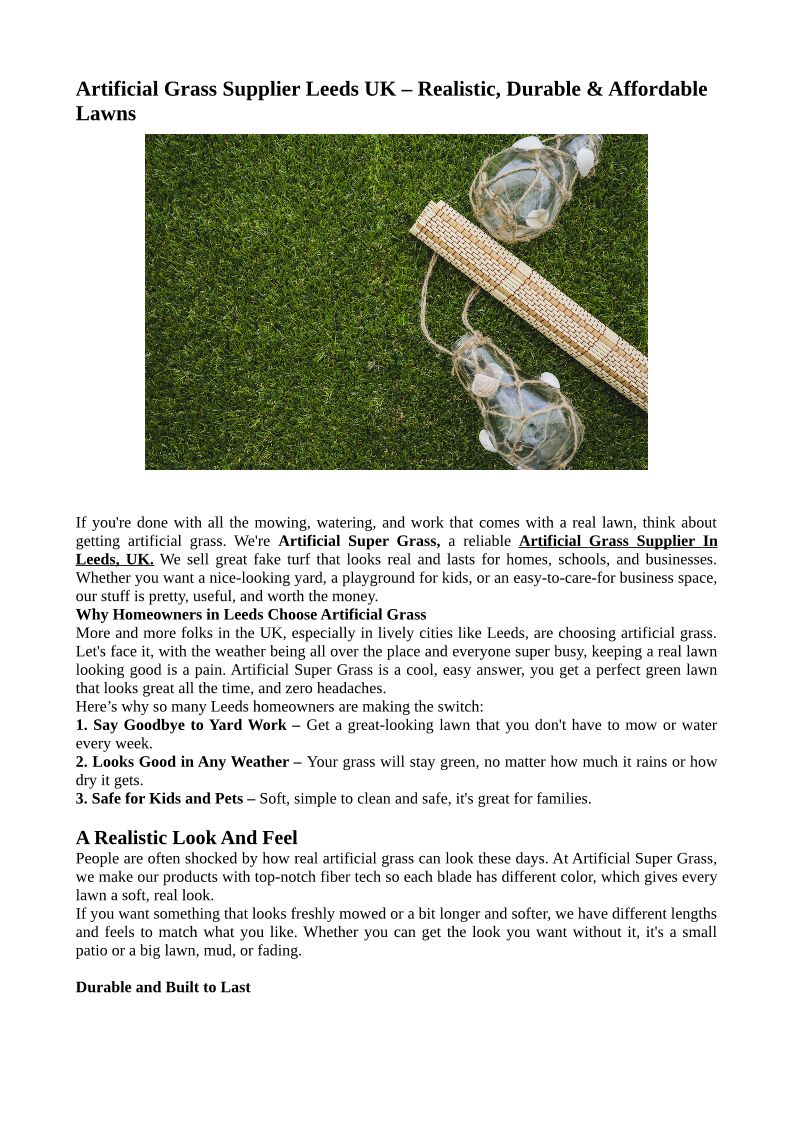 Artificial Super Grass is a UK company supplying top-quality artificial grass to homes and businesses. With plenty of products, free samples available.
