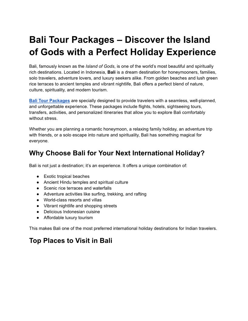 Bali Tour Packages 7 Days