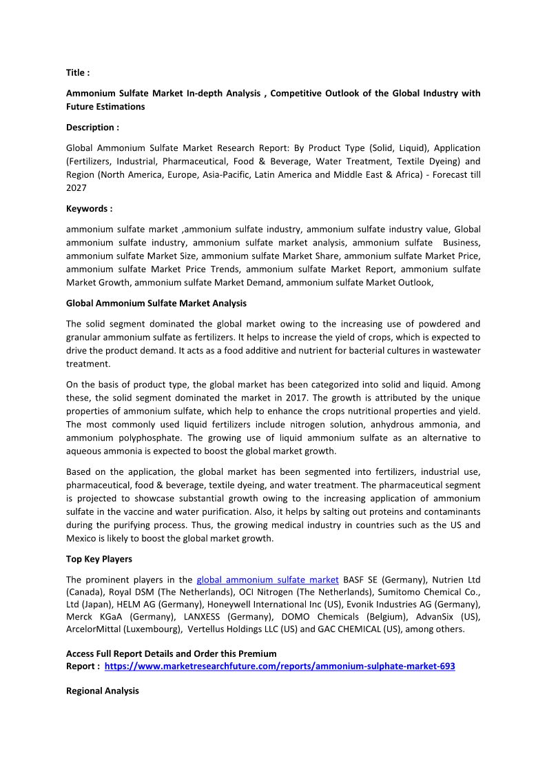 Global AmmAmmonium Sulfate M...
