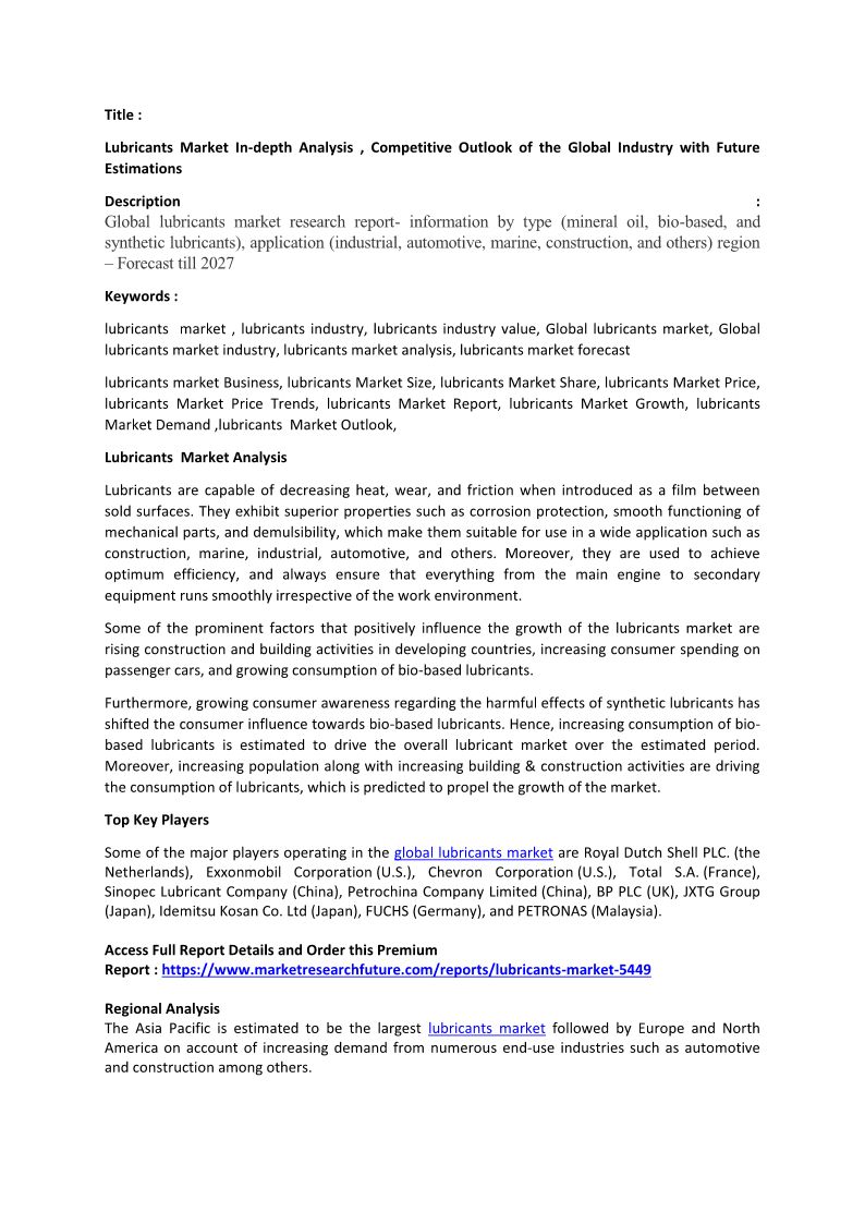 Lubricants Market Analysis