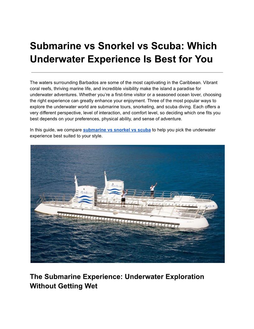 Exciting Underwater Submarine Tours in Barbados