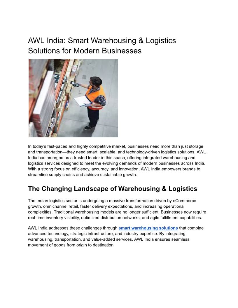 AWL India is a leading tech-based B2B Supply Chain Management company located at over 1700 locations & serving 70+ countries with 15 years of master expertise.