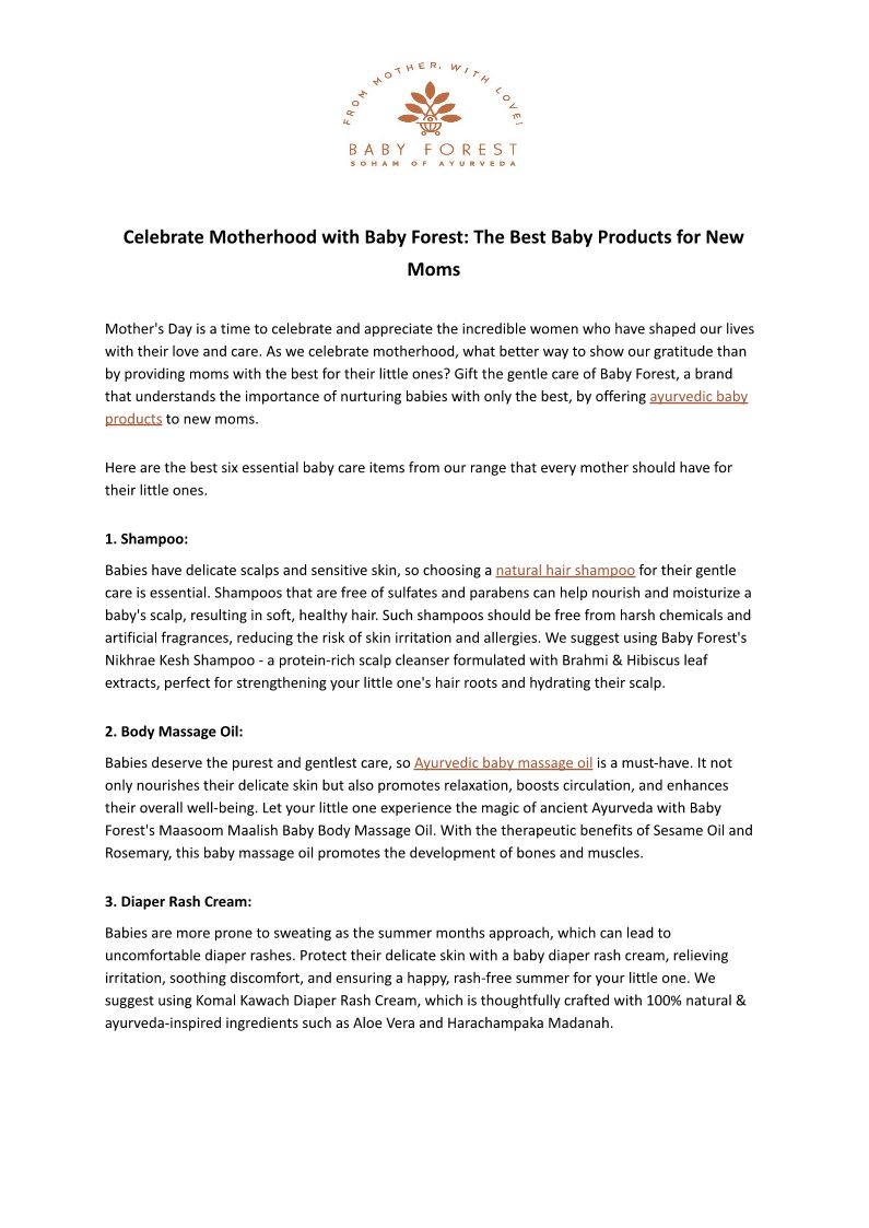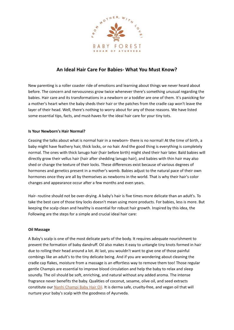 Baby Forest wishes every baby to enjoy the benefits of a forest, where Ayurveda was born and where natural, organic nourishing solutions reside. The kind of who