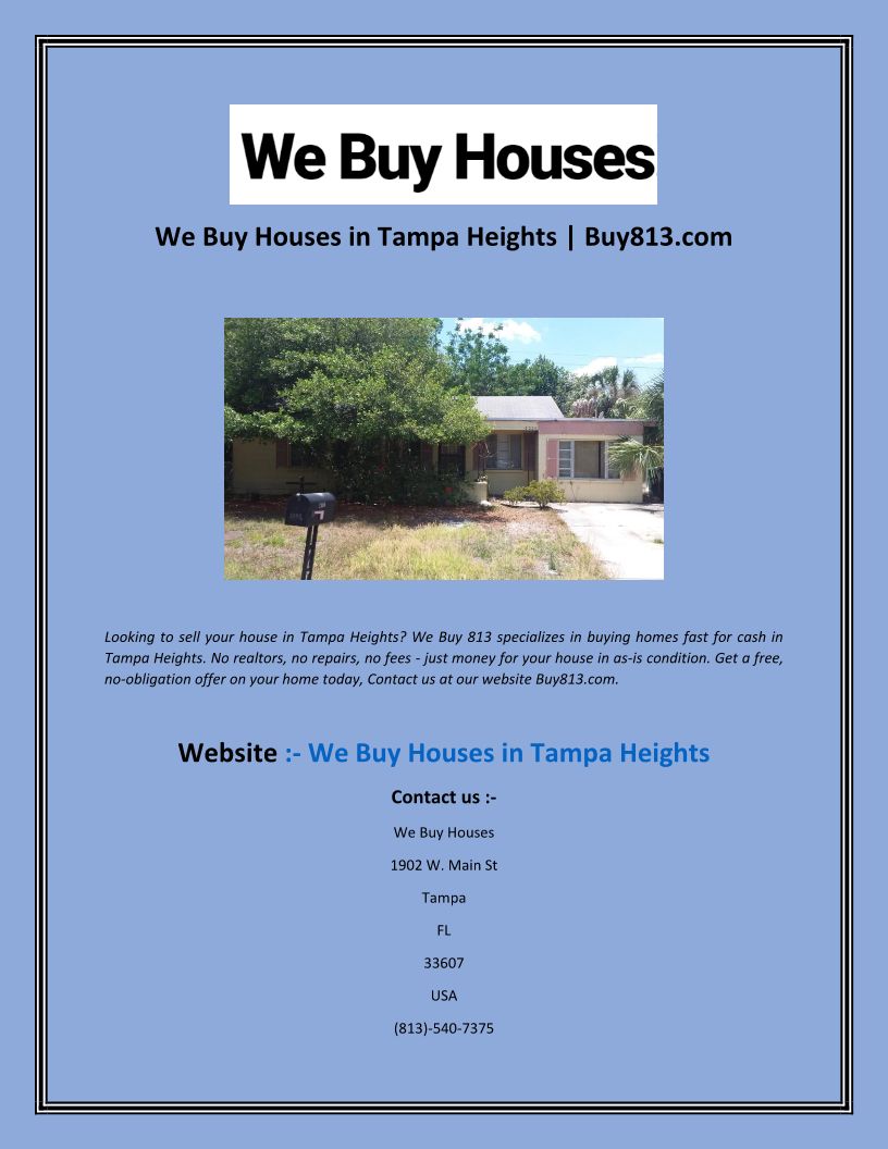 We Buy Houses in Tampa Heigh...