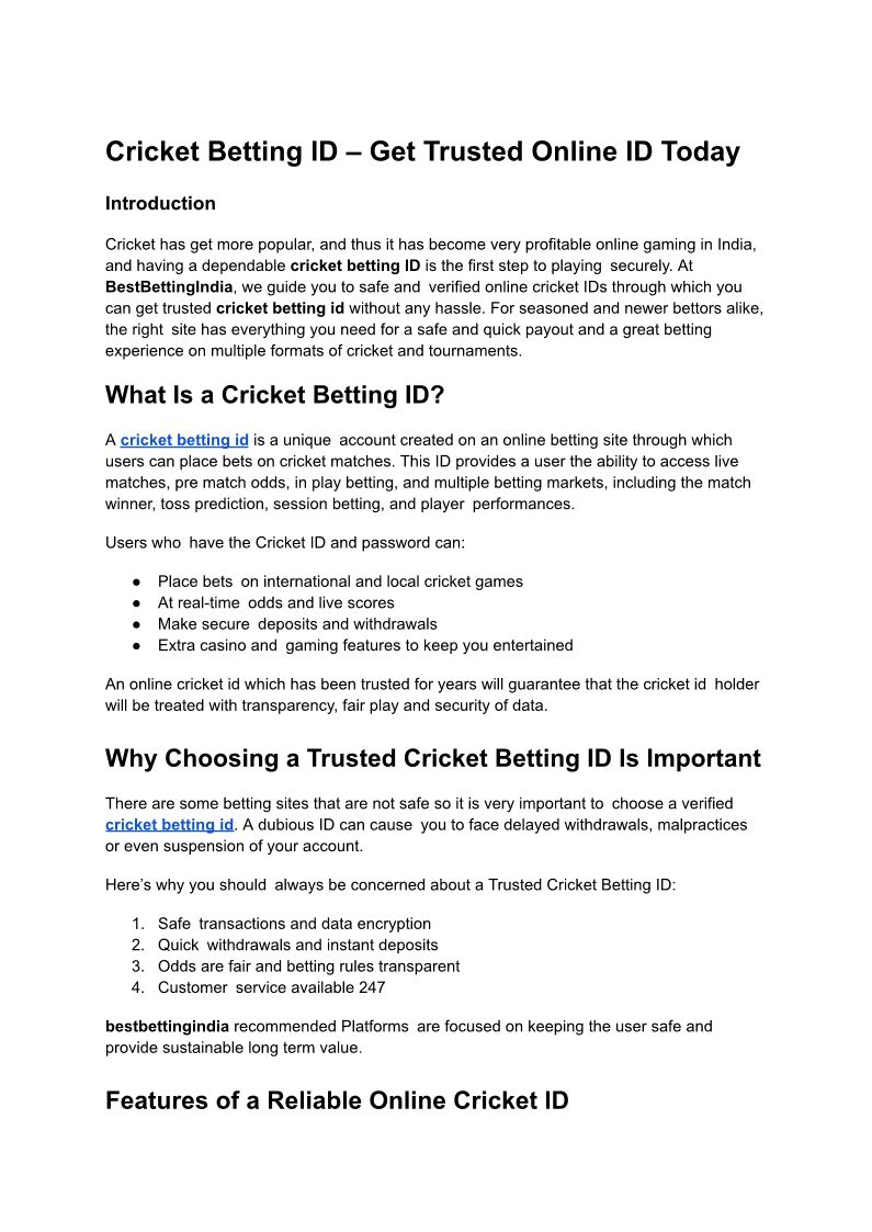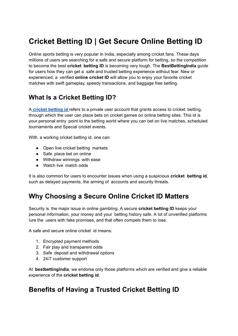 Cricket Betting ID – Get T...