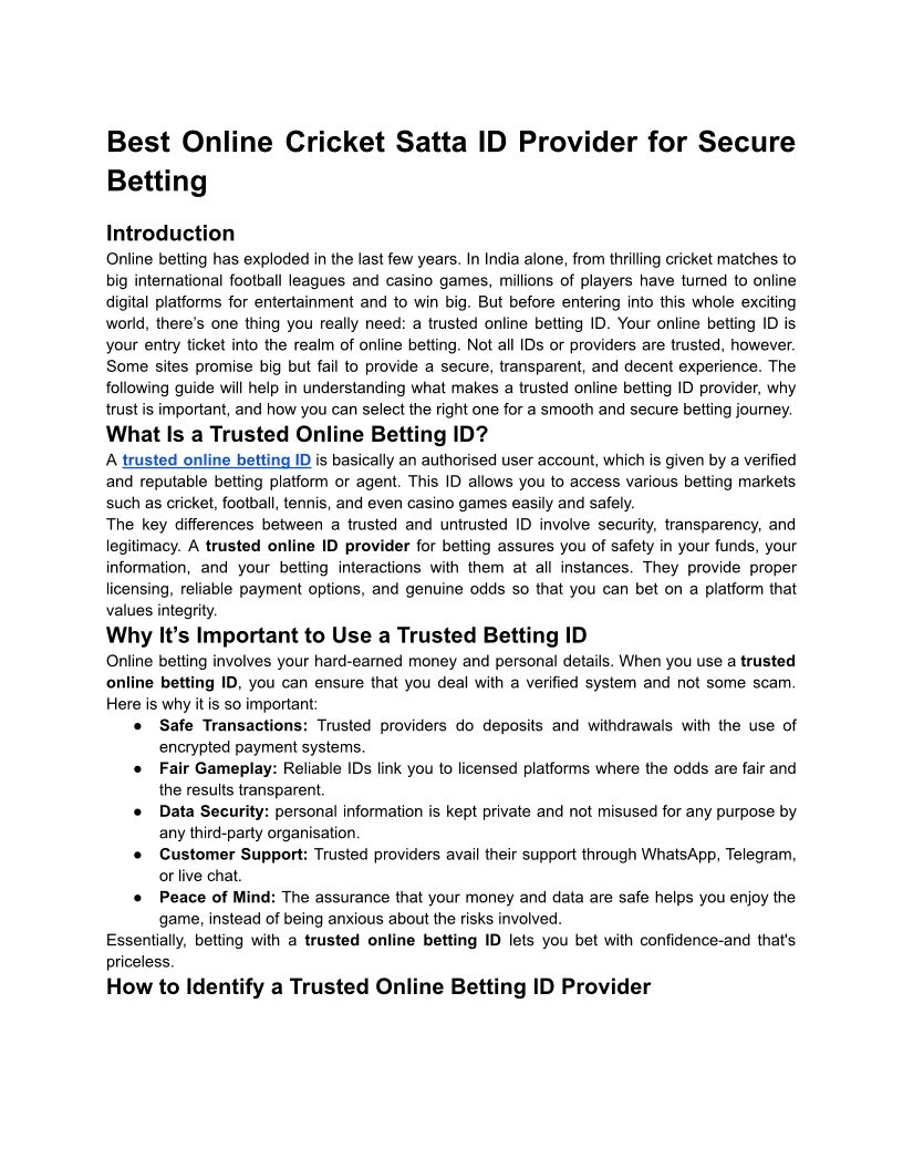 Best Online Cricket Satta ID...