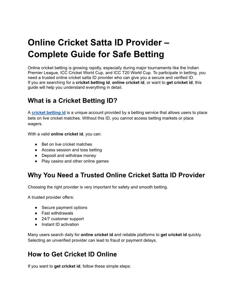 Online Cricket Satta ID Prov...