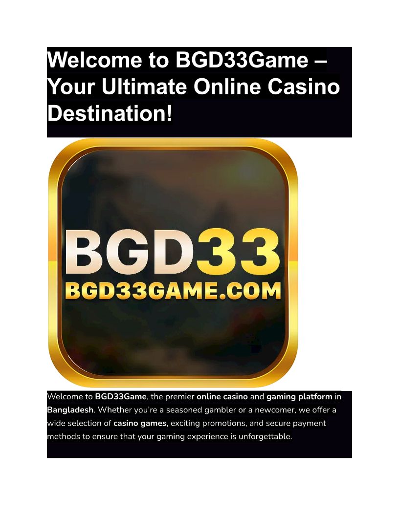 Welcome to BGD33Game, the premier online casino and gaming platform in Bangladesh. Whether you’re a seasoned gambler or a newcomer.