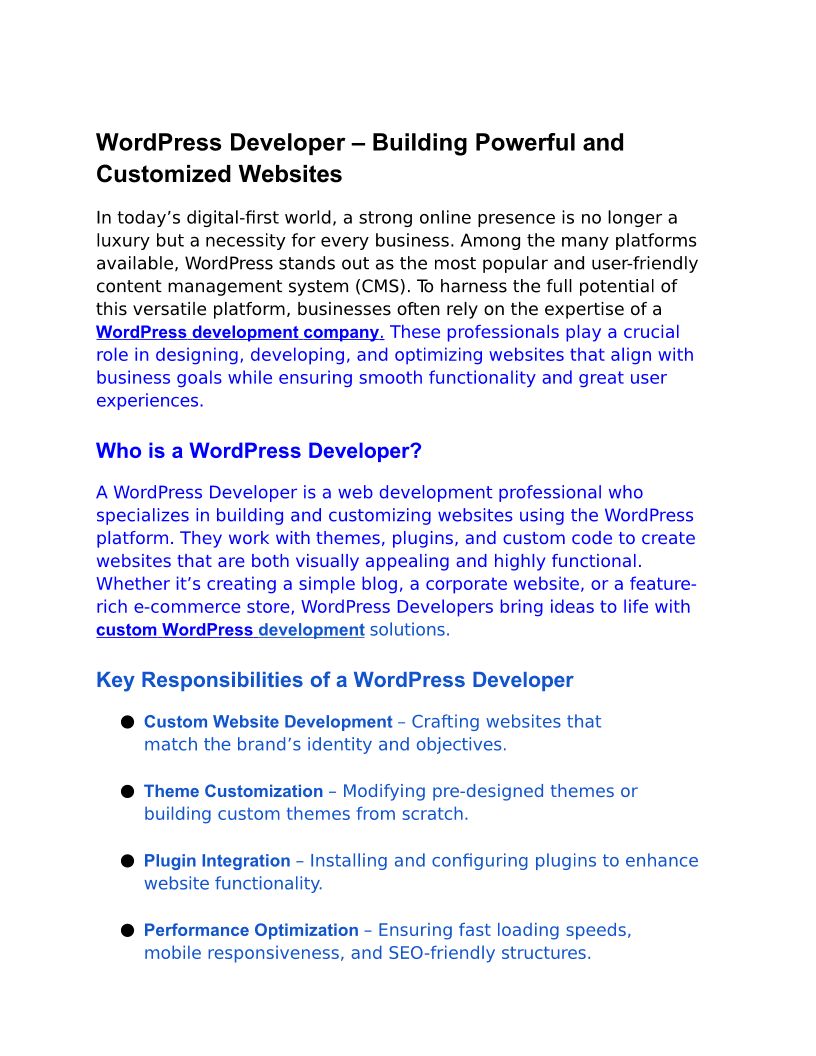 WordPress Developer – Buil...