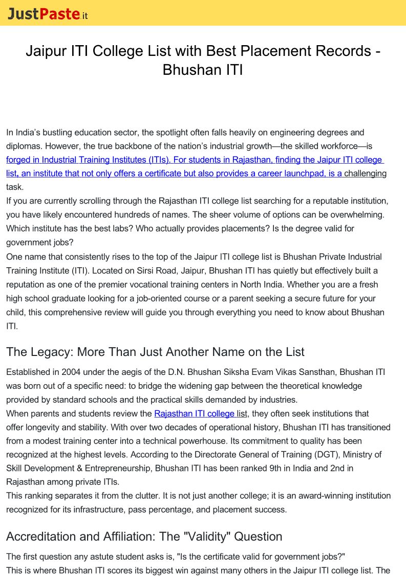 Bhushan Pvt. Industrial Training Institute is emerging as a pioneering institute on the Industrial Training horizon with a firm commitment to “Excellence throug