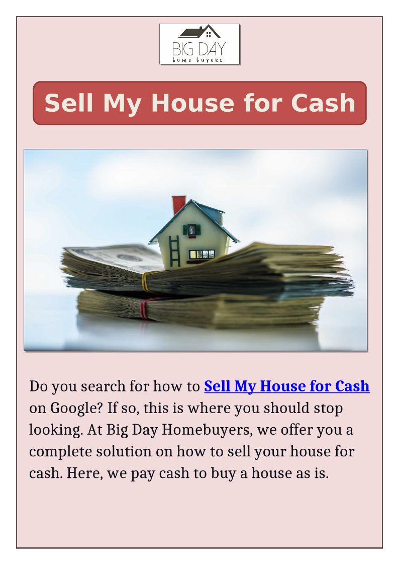 Big day homebuyers is a leading real estate firm offering assistance to homeowners quickly sell their homes at a fair cash amount.