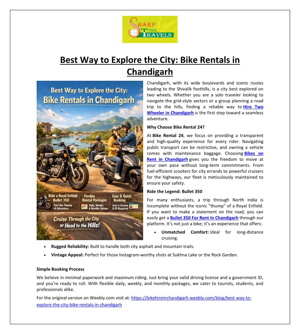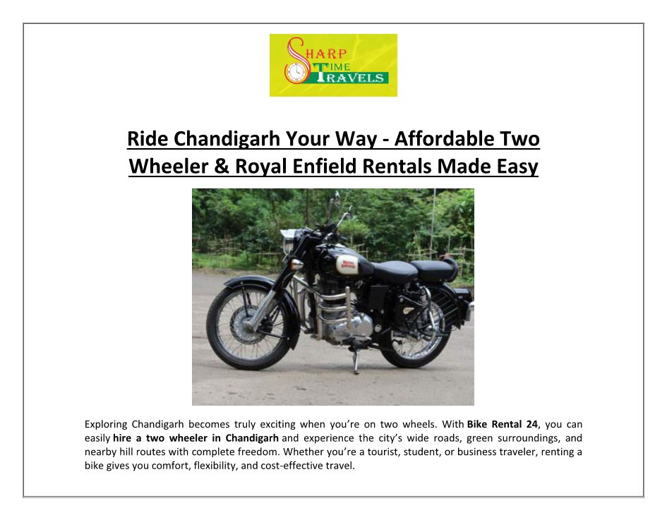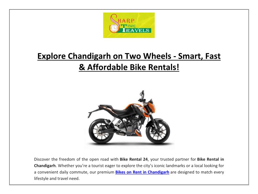 India’s leading portal offering useful Bike renting Service in Chandigarh India that ensures you complete convenience, comfort and safety while traveling.