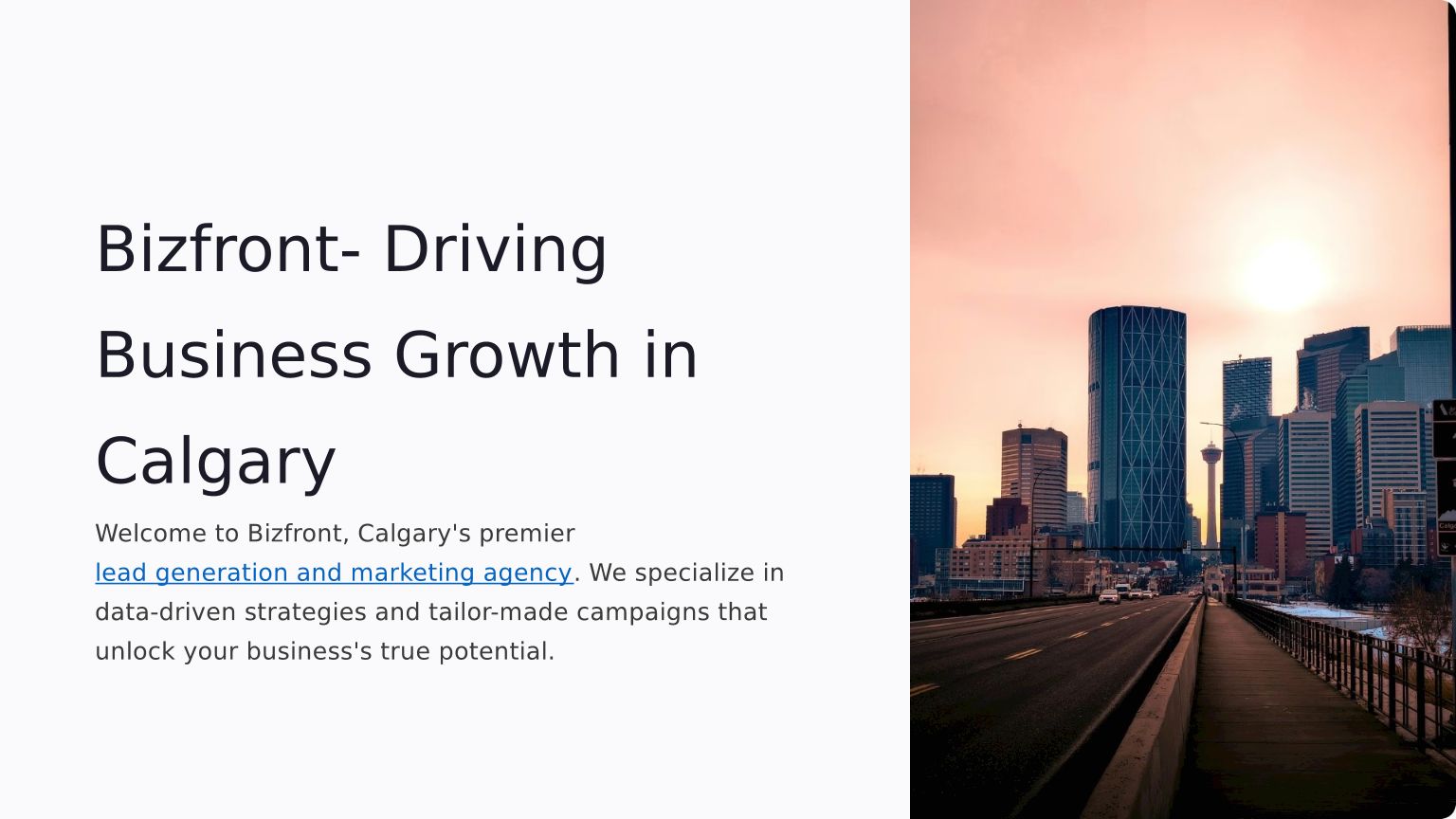 Bizfront Is Calgary's Performance-Based Digital Marketing Agency Specializing in Web Design, Branding and Lead Generation for Small and Medium-Sized Businesses.