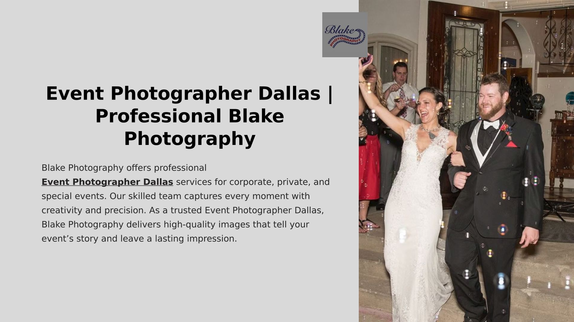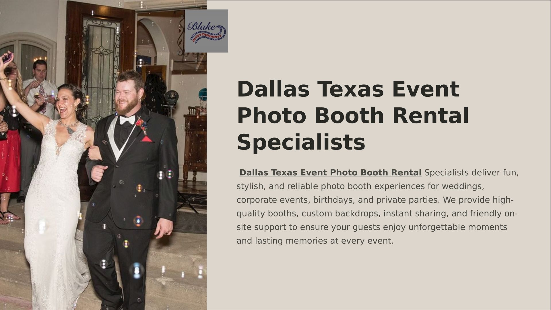 Blake Photography offers professional event photography, on-site printing, green screen setups, and photo booths in Dallas, Texas. Capture unforgettable moments