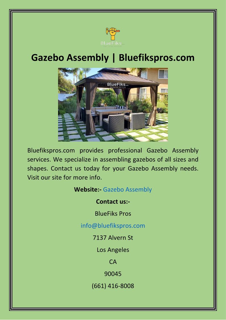 Gazebo Assembly Bluefikspro...