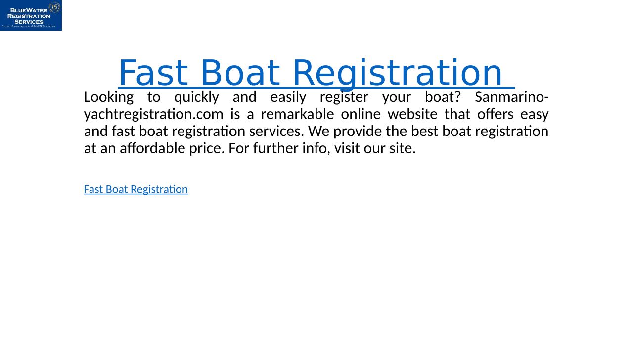 Fast Boat Registration Sanm...