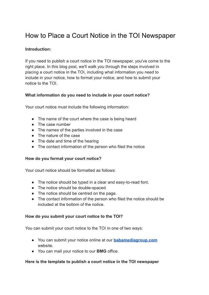 Place a Court Notice in the ...
