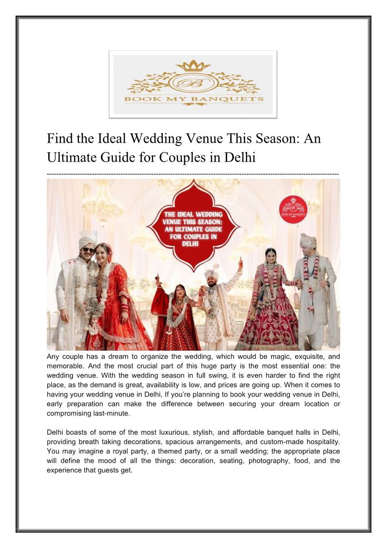 Your dream wedding starts here! Explore stunning venues this season with Book My Banquets for style, comfort, and great prices.