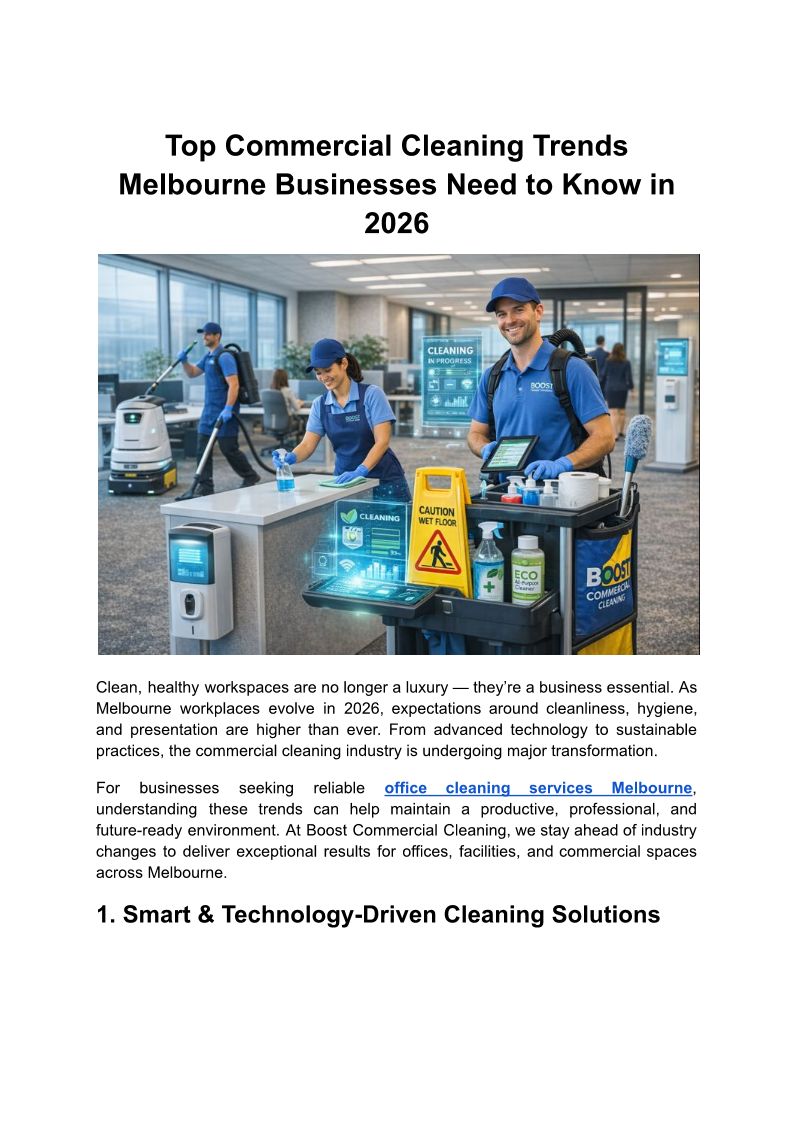 Boost Commercial Cleaning offers professional commercial cleaning services in Melbourne. Trusted, local cleaners for offices, medical centres & more.