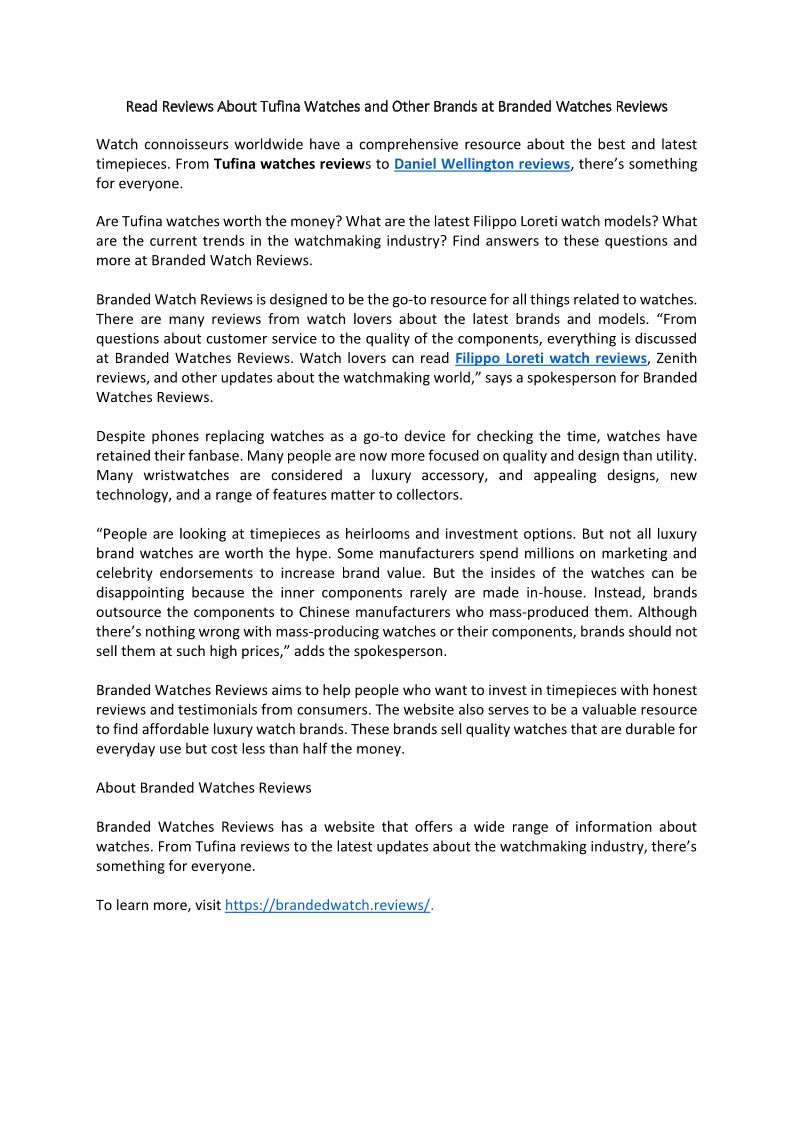 Branded Watch Review helps you find genuine customer reviews about branded watches, watch tests, and review posts with the help of our expert team.