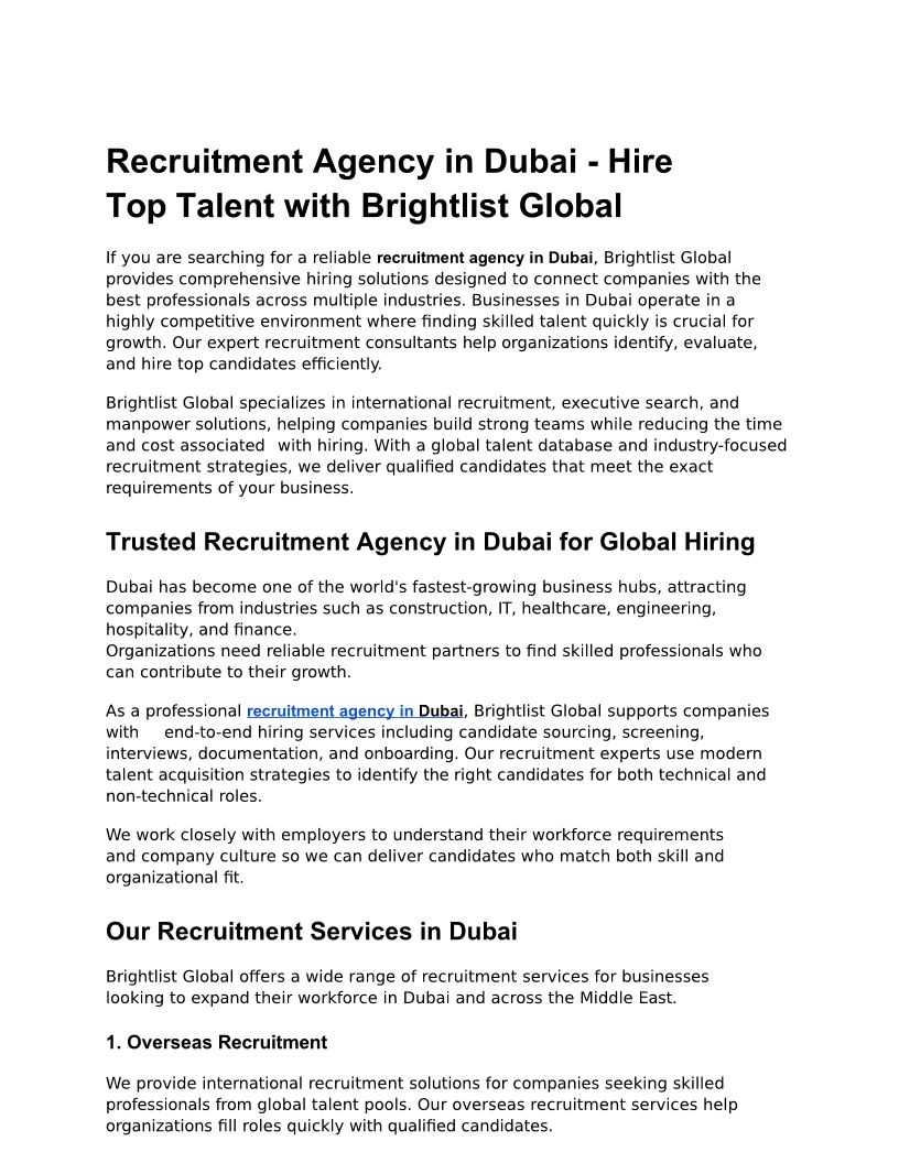 Brightlist Global is a leading Recruitment Agency in Mumbai and Dubai, providing professional staffing services, and manpower recruitment