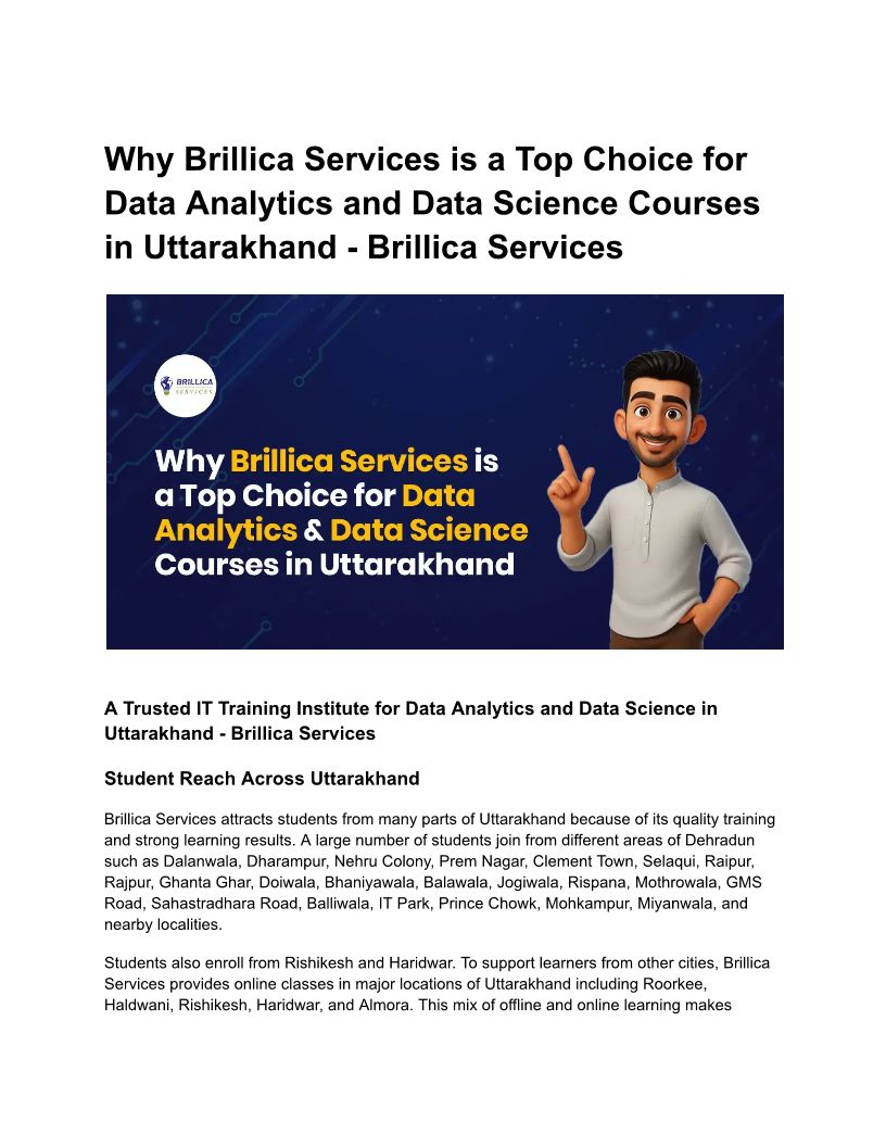 Brillica Services provides expert IT training in Data Analytics, Data Science, Web Development, Digital Marketing, Power BI, Python, Machine Learning and more.