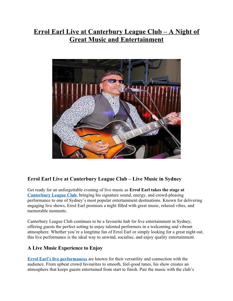 Experience Errol Earl Live a...