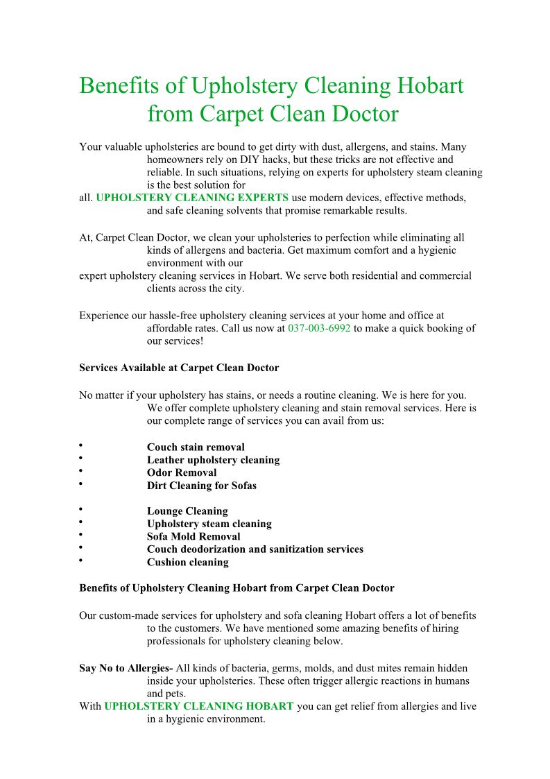 Benefits of Upholstery Clean...