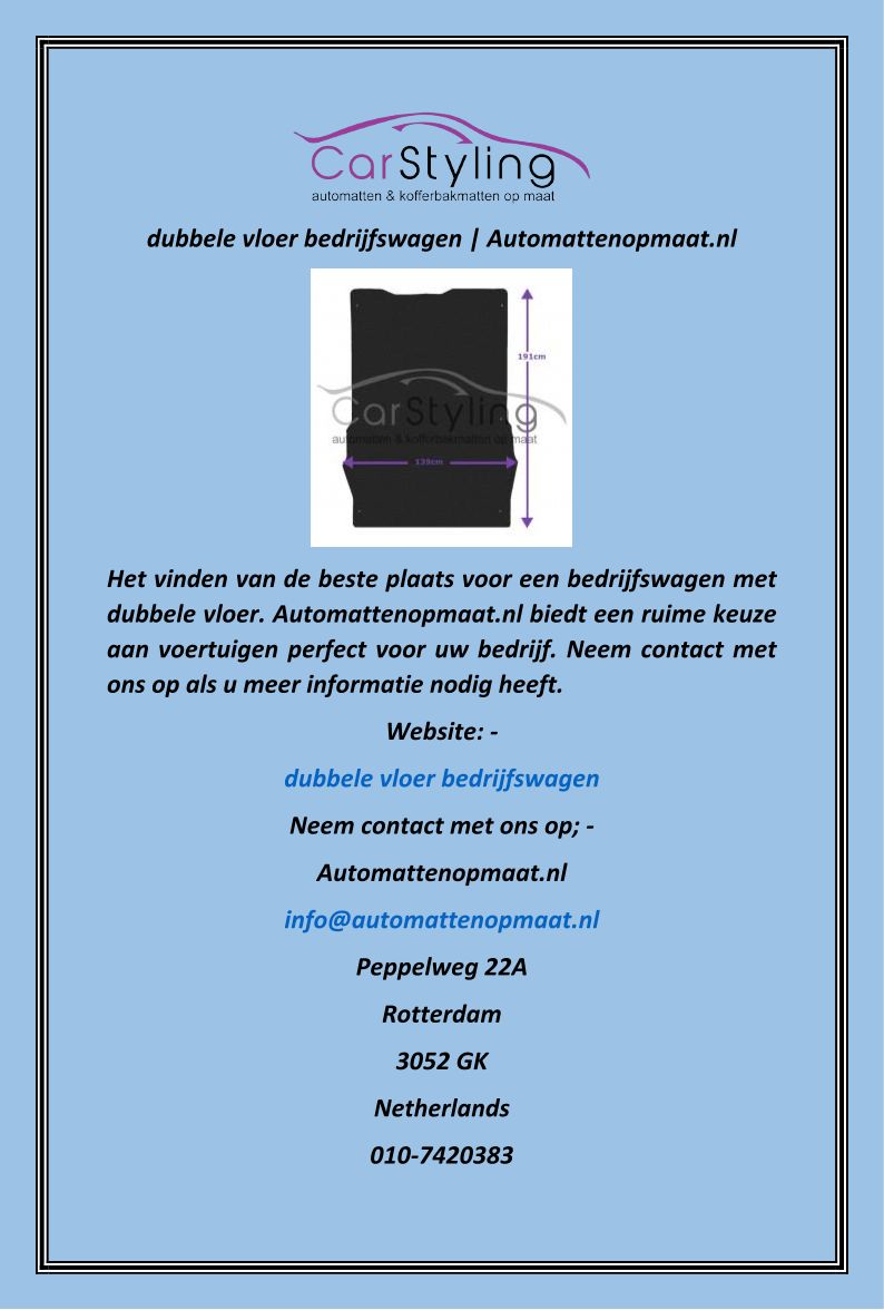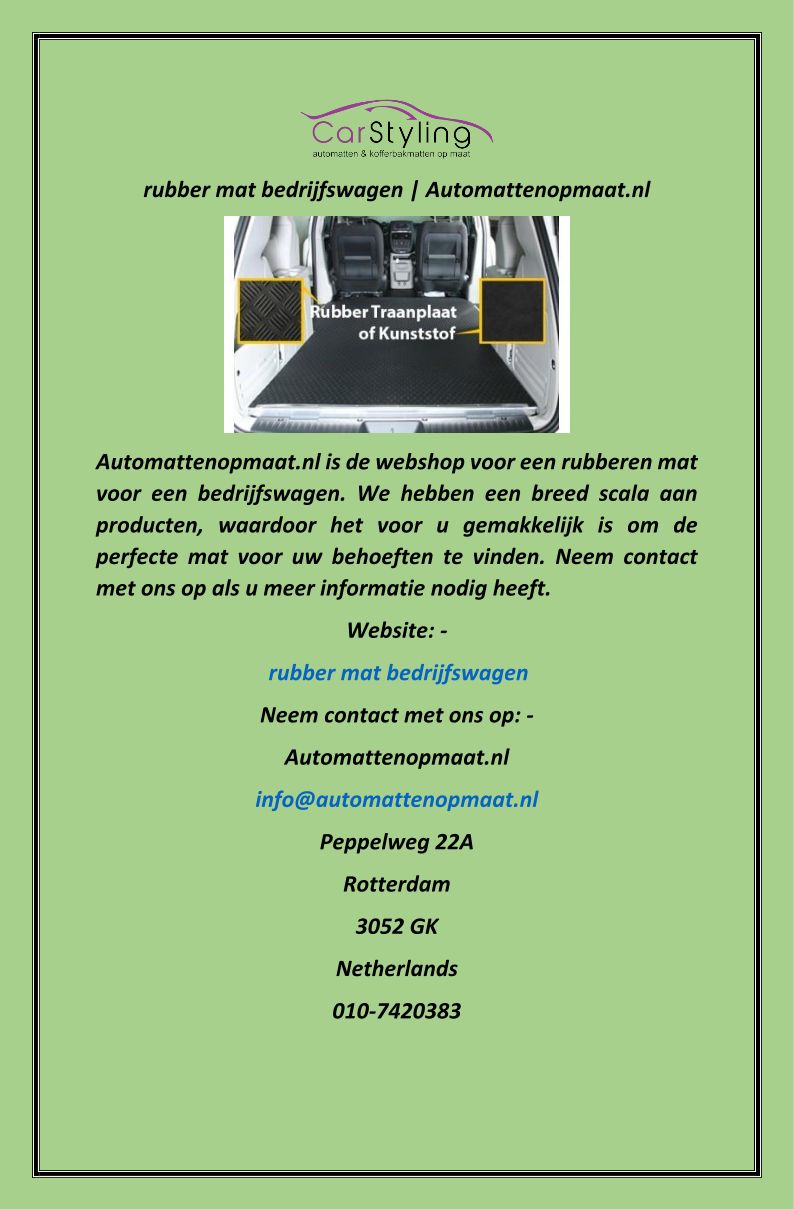 rubber mat bedrijfswagen Au...