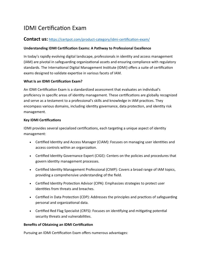 IDMI Certification Exam
