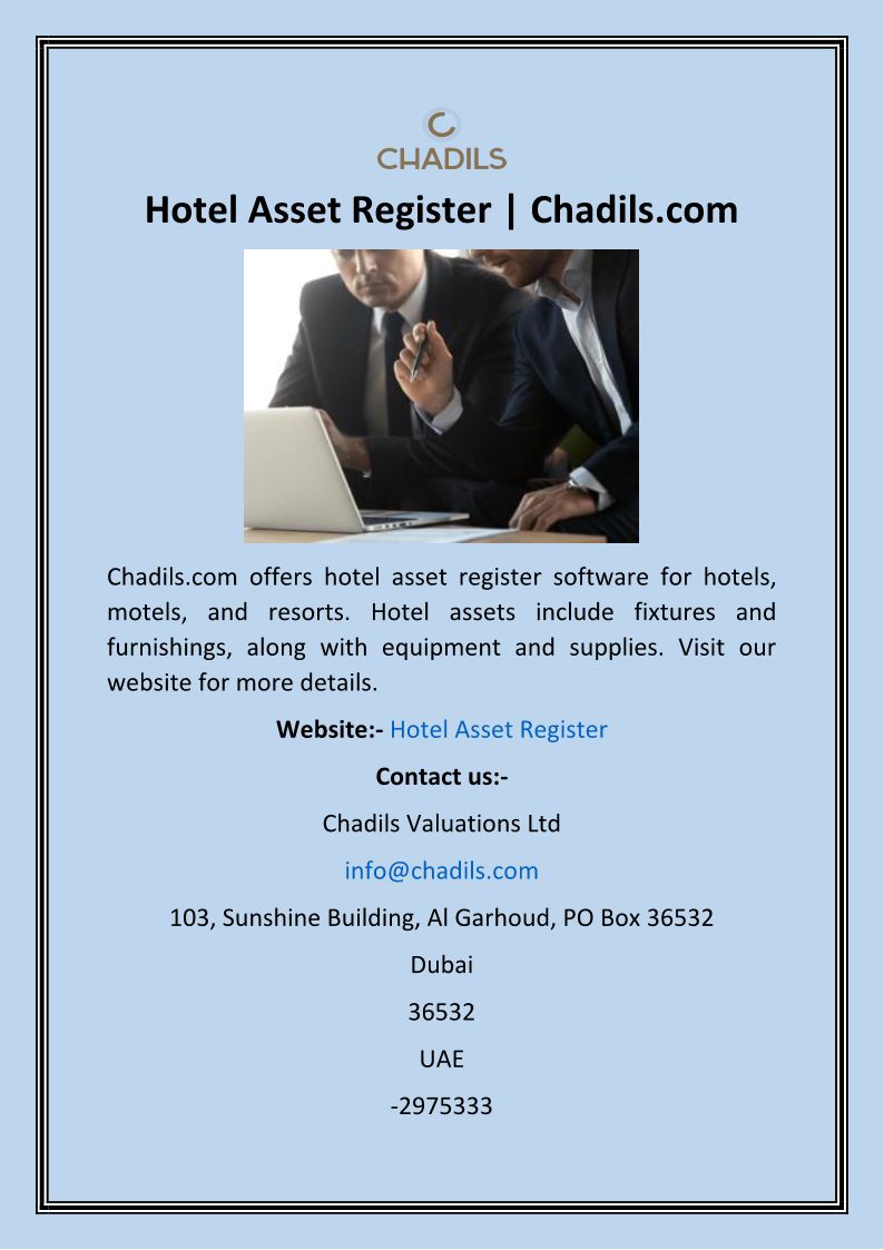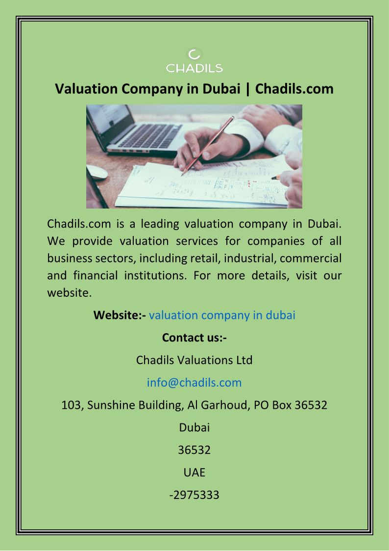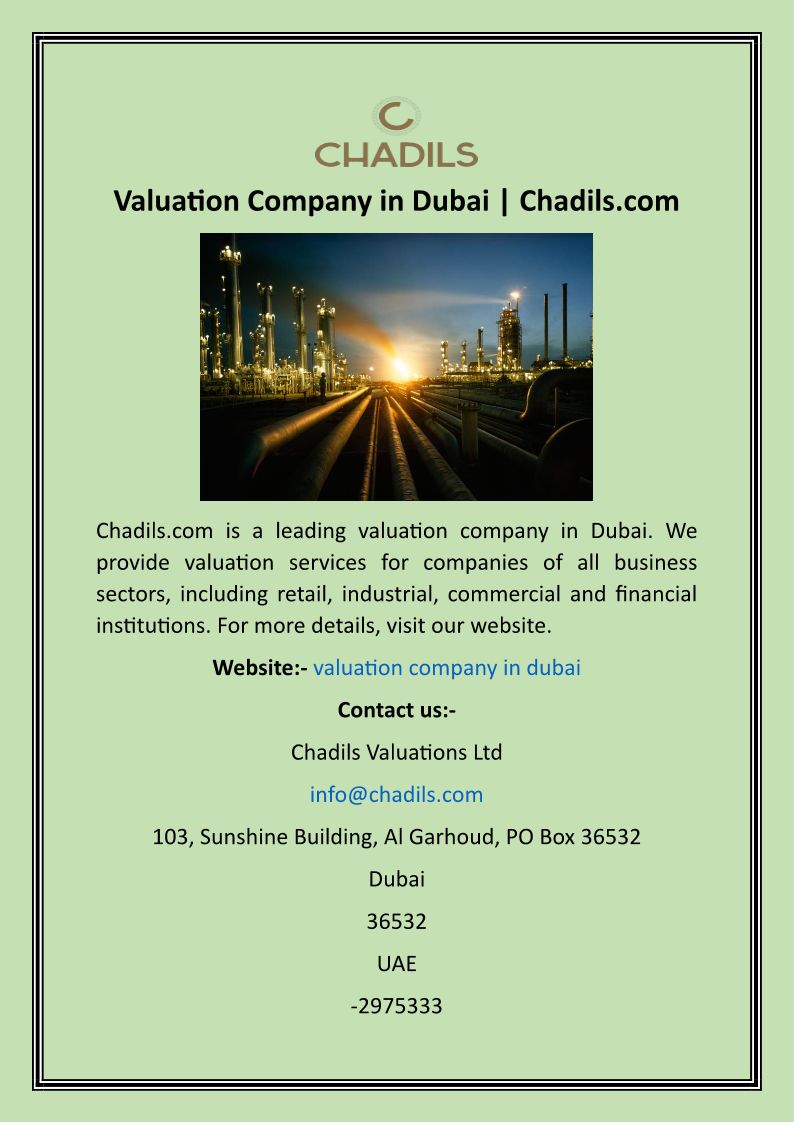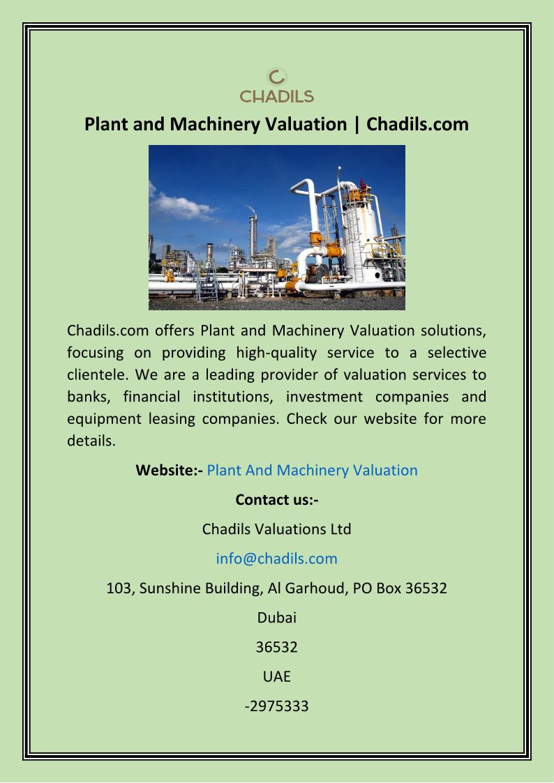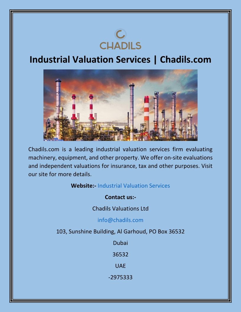 Chadils Valuations LTD is a global valuation and consulting Services Company that offers property, plant & machinery, and market asset valuation services.
