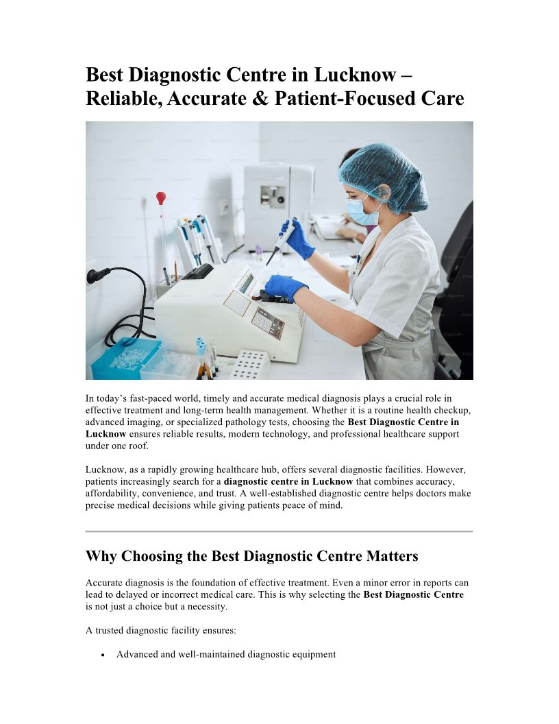Chandan Diagnostic, a unit of Chandan Healthcare Ltd., is one of the Best Diagnostic Centres in Lucknow, known for its accuracy, reliability, and advanced medic