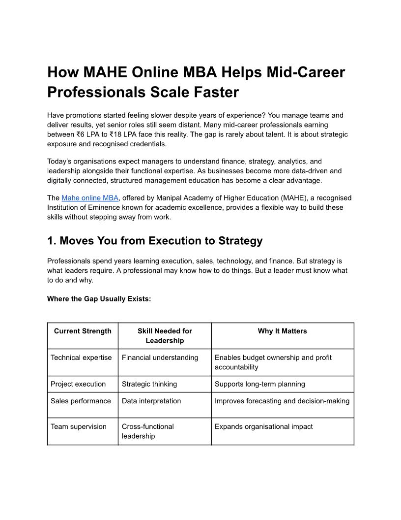 How MAHE Online MBA Helps Mi...