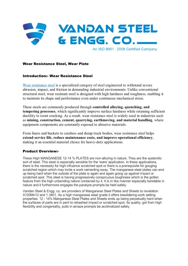Wear Resistance Steel