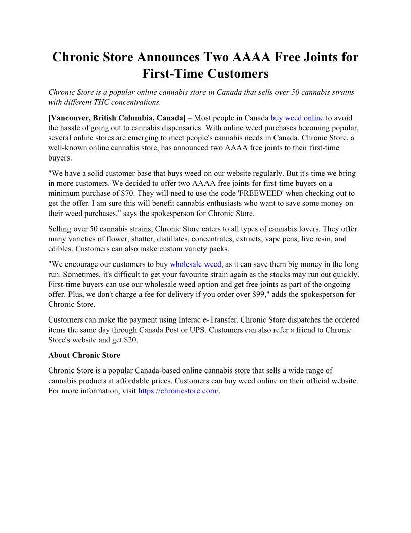 Chronic Store is an online cannabis retailer in Canada that sells a wide range of affordable cannabis flowers, concentrates, distillates.