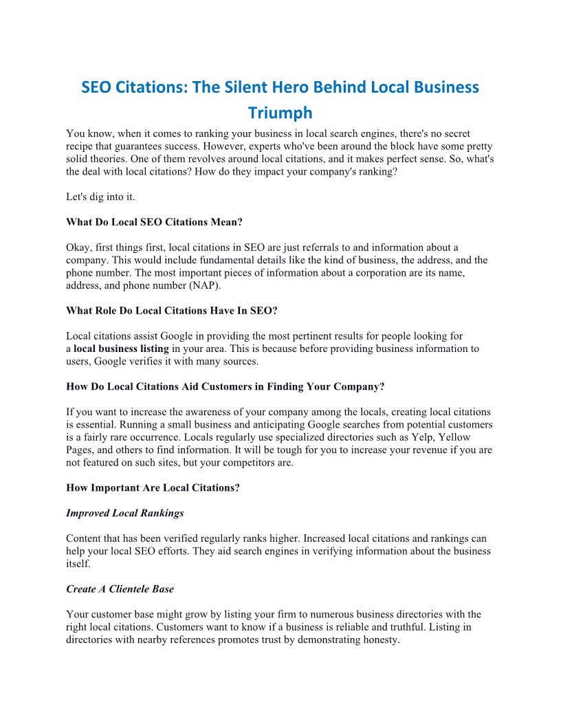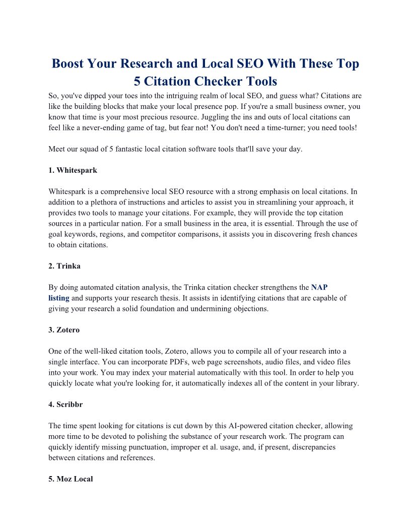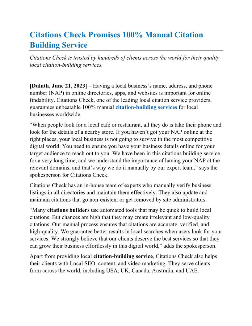 Citations Check is a premier local citation services provider offering manual NAP citation building in US, UK, Australia, Canada & UAE. Visit citationscheck.com