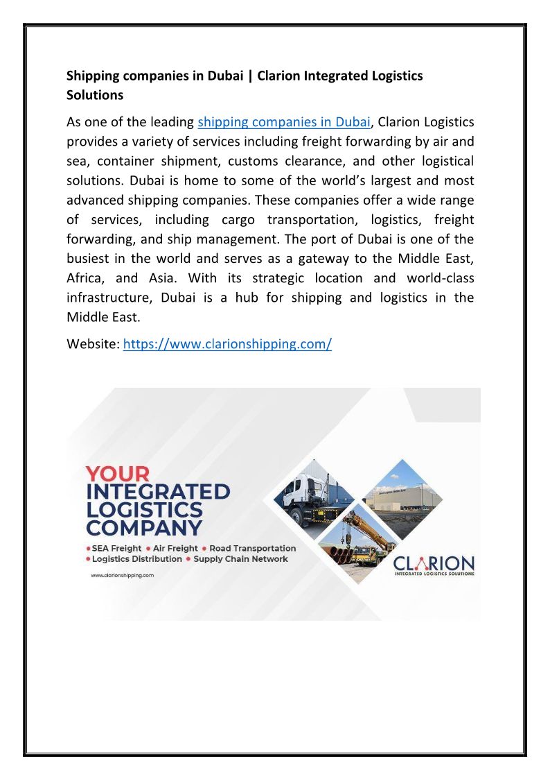 Shipping companies in Dubai