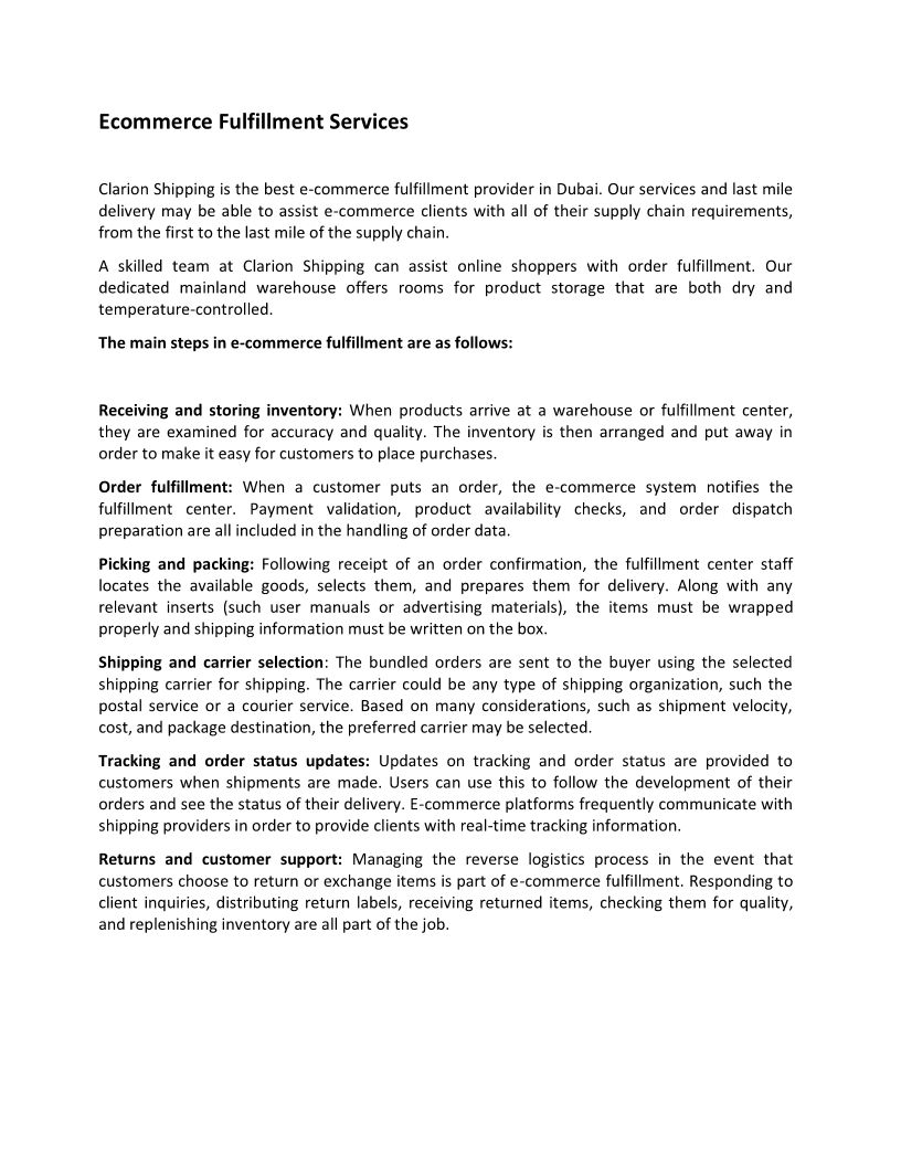 E Commerce Fulfilment Servic...