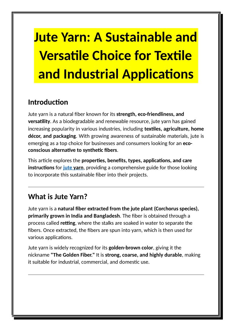 Jute Yarn – A Sustainable ...