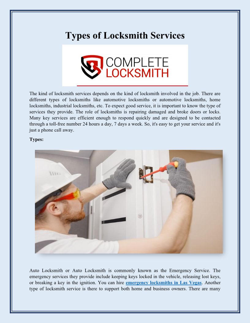 Types of Locksmith Services