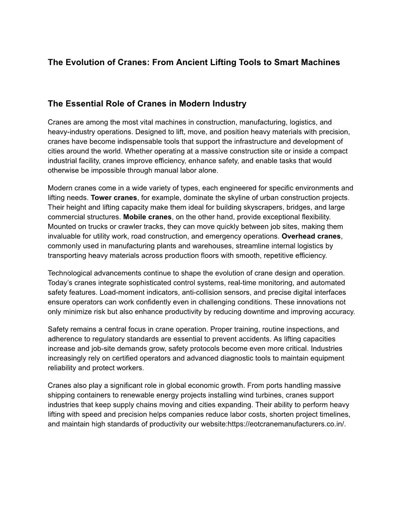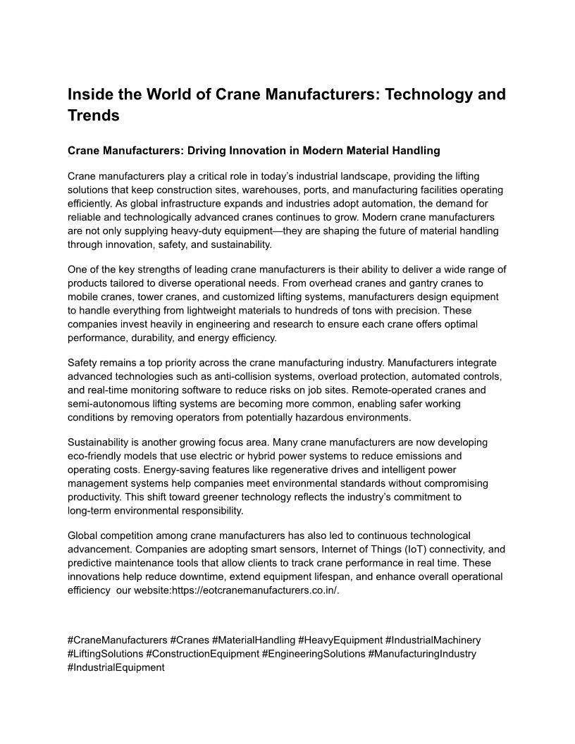 Crane Manufacturers in chenn...